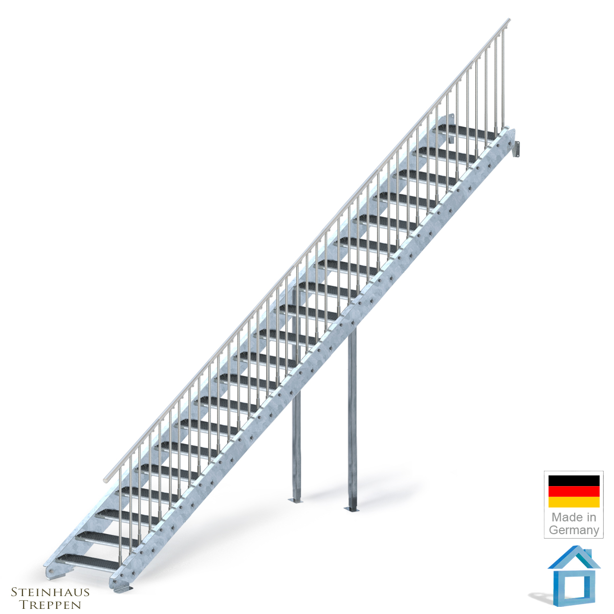 | Normen & Zertifizierung: | Nach DIN EN 1090-2 und DIN 18065 (Gebäudetreppe) |