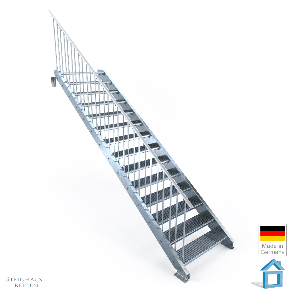 Stahltreppe 14 Stufen in üblichen Normbreiten