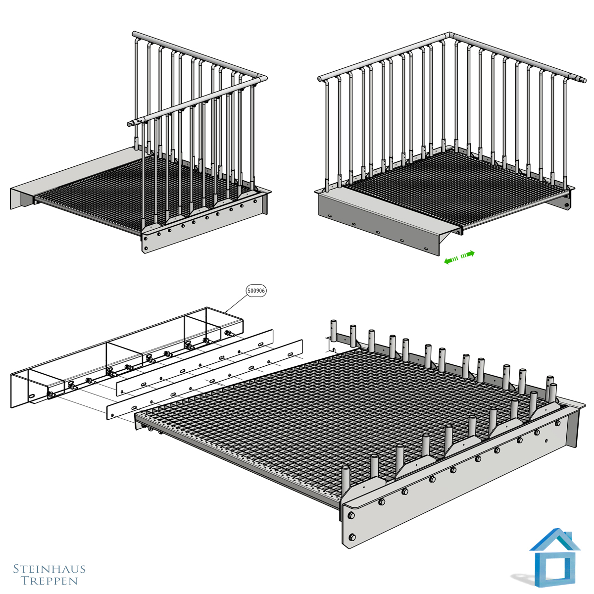 Für beide Seiten der Treppenbrücke ist ein Geländersegment inklusive,