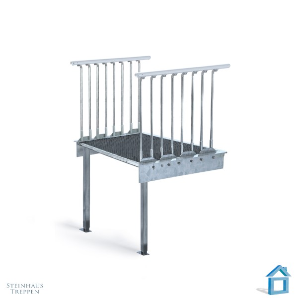 Im handlichen Bausatz liefern wir zerlegt in Einzelteilen ein Treppenpodest zur Selbstmontage. Die Lieferung erfolgt inklusive aller Schrauben und Geländer. Mit Auswahl der geplanten Anbauhöhe bestimmen Sie die Länge der im Lieferumfang ebenfalls enthaltenen Bodenstützen.