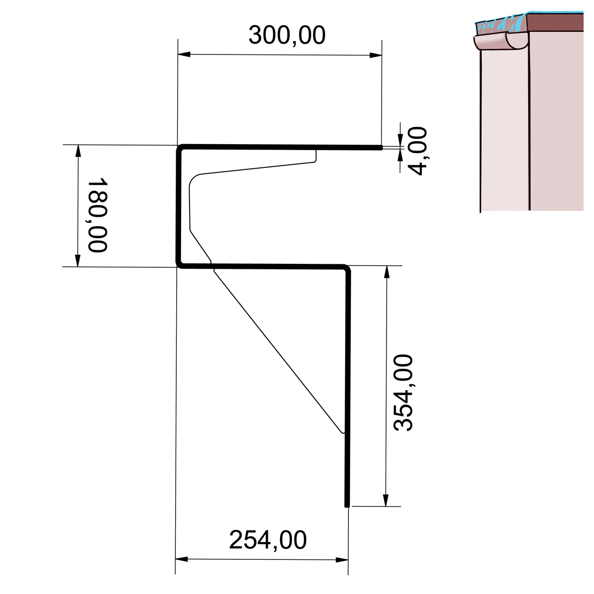 Die tieferliegende vertikale Profilfläche (ca. 35 cm) dient dazu unterhalb der Regenrinne in der Betondecke oder dem Deckenkranz mit Mauerankern an der Hausfassade zu verschrauben.