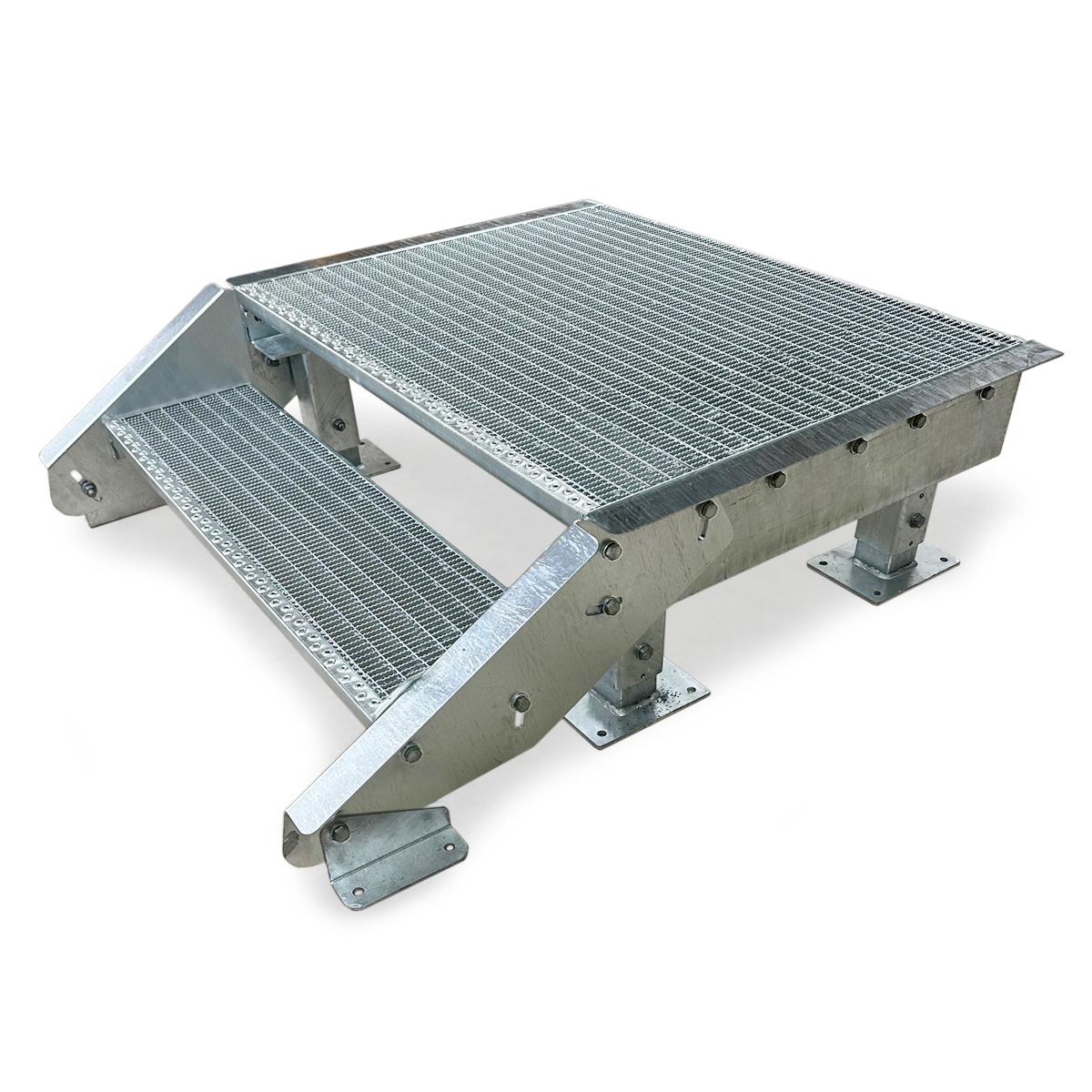 Unser Treppenpodest ist optional auch bestellbar als fertig vormontierter Bausatz geliefert.