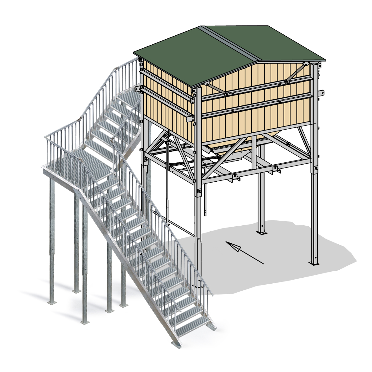 Steht Ihre Siloanlage zusätzlich auf Holzschwellen, kann diese Treppe auf Anfrage auch höher skaliert und angepasst werden.