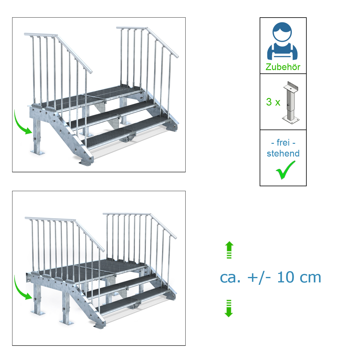 - Stufenabstand / Tritthöhe ist einstellbar von: min. 16,6 cm bis max. 20 cm
