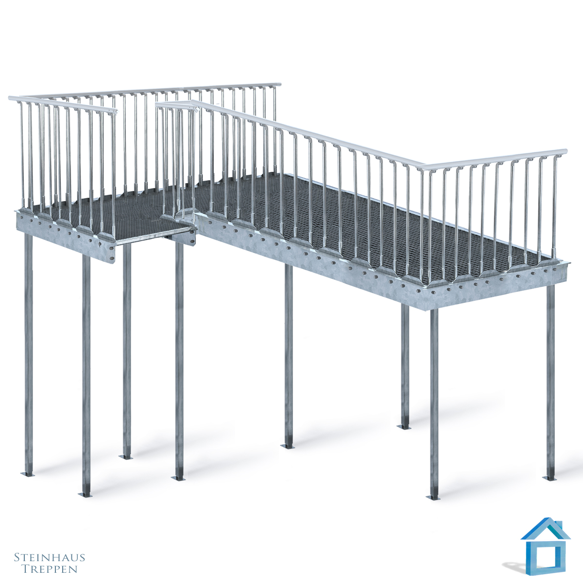 - Bestellbare Länge der Stützen nach Auswahl GH ab 3 Stufen bis 16 Stufen Zugangstreppe