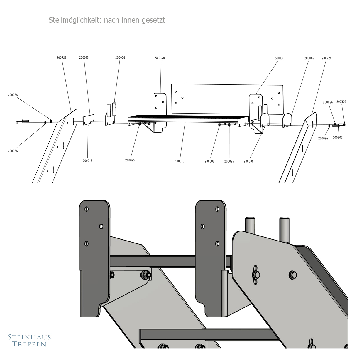 | Bauteil Verwendung: | Kopfwinkel Treppenmontage, Tritt unterhalb = plus eine Steigung |