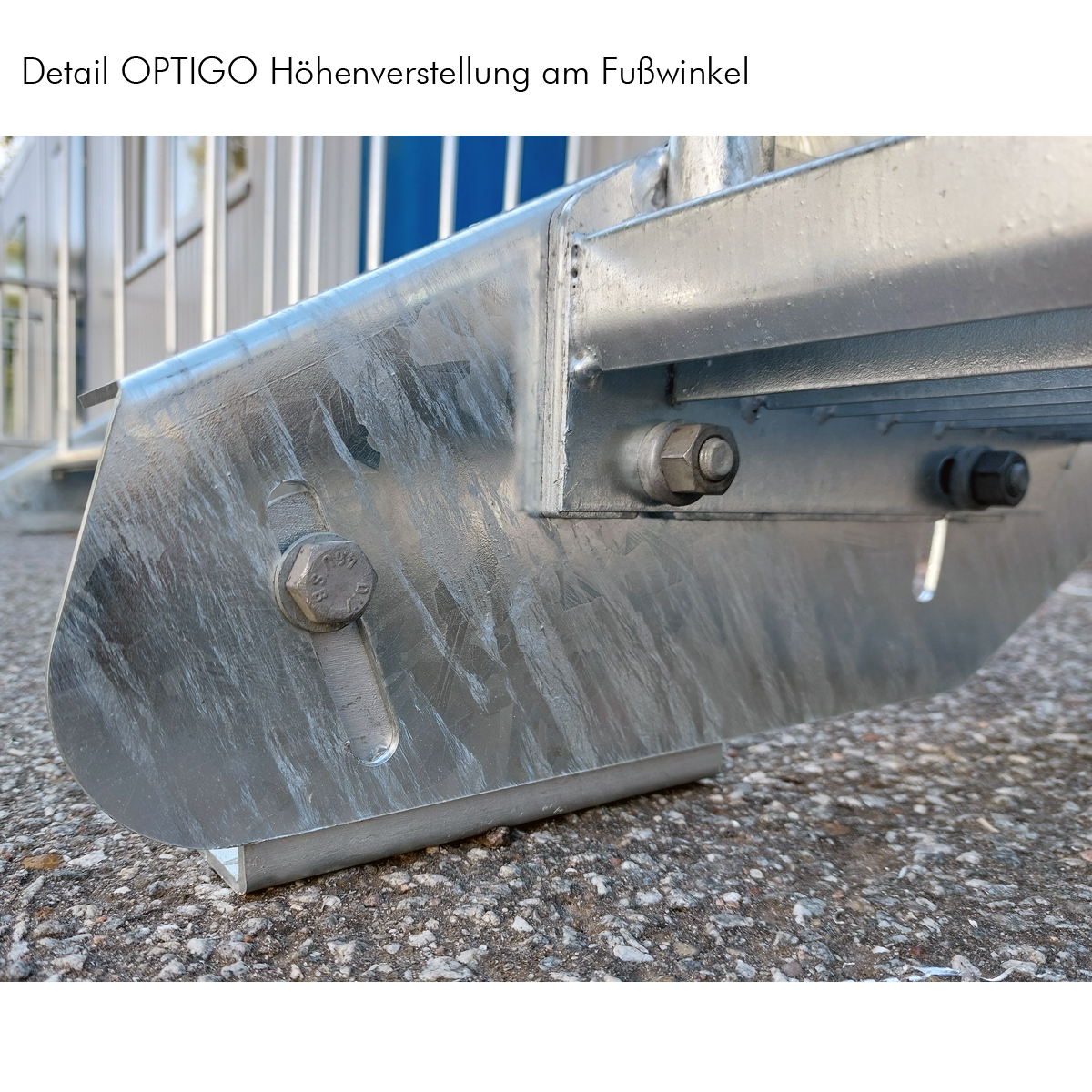 und große Winkel (6 mm Stahlstärke) bei 5 - 20 stufiger OPTIGO Treppe.